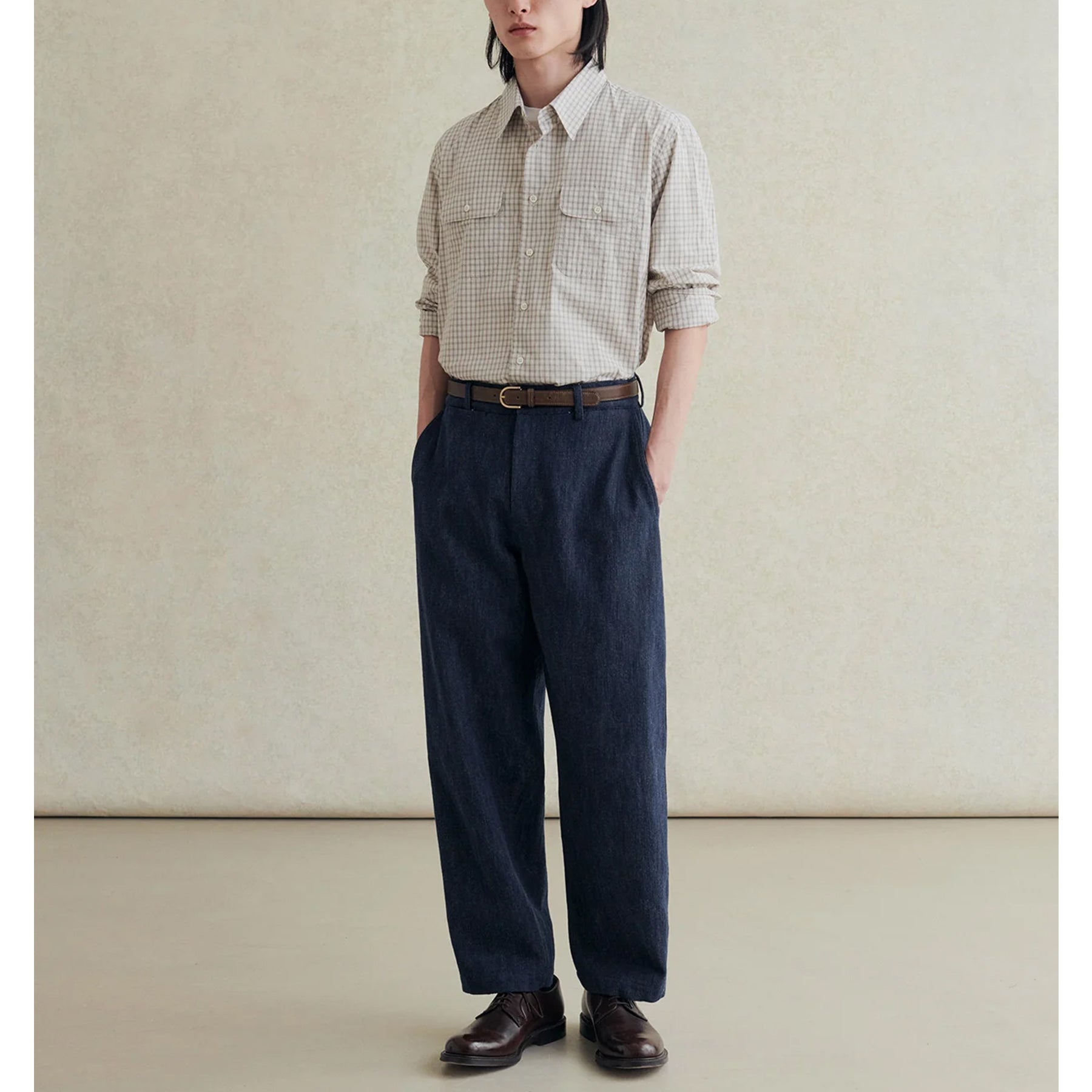 Artist Japanese Mug Wash Check Shirt in Beige