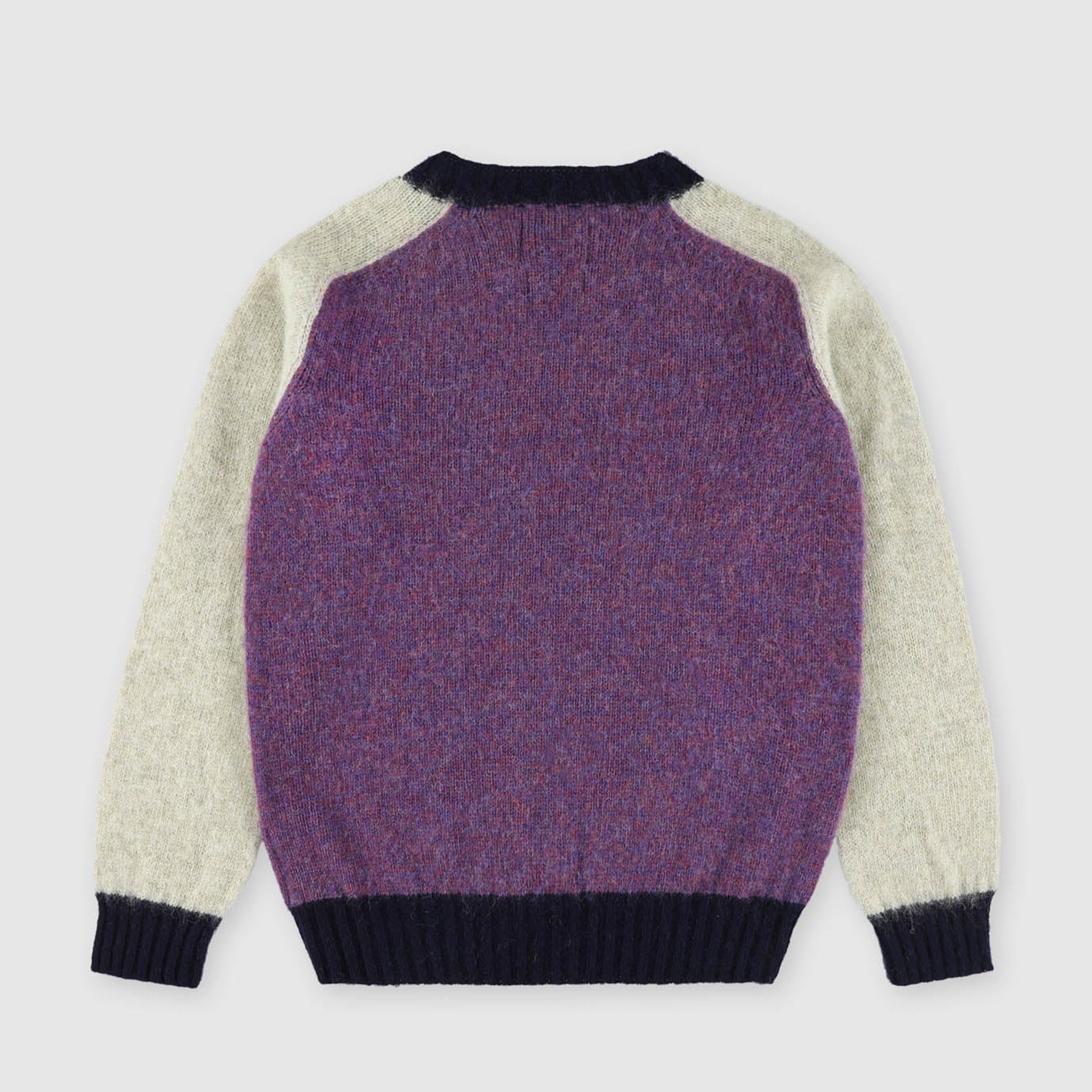 Coco is a crew neck jumper with bold color blocking. Expertly crafted in Scotland, it’s made from 100% pure wool spun from the hardy Shetland sheep—an ancient breed renowned for thriving in the rugged Scottish climate. Brushed finishing using traditional techniques. Features fine rib-knit cuffs and hem for a refined fit. Hand finished.