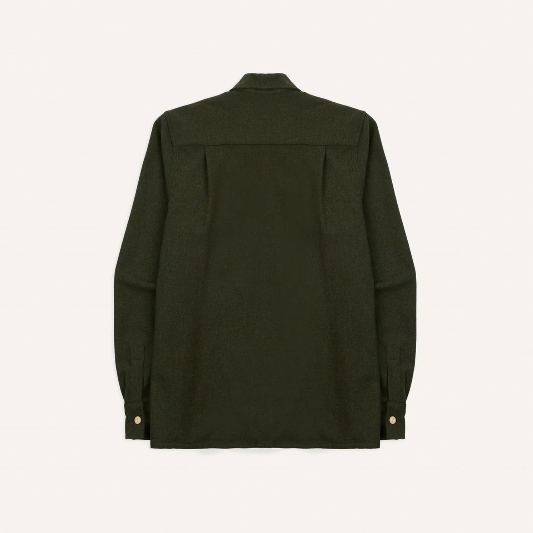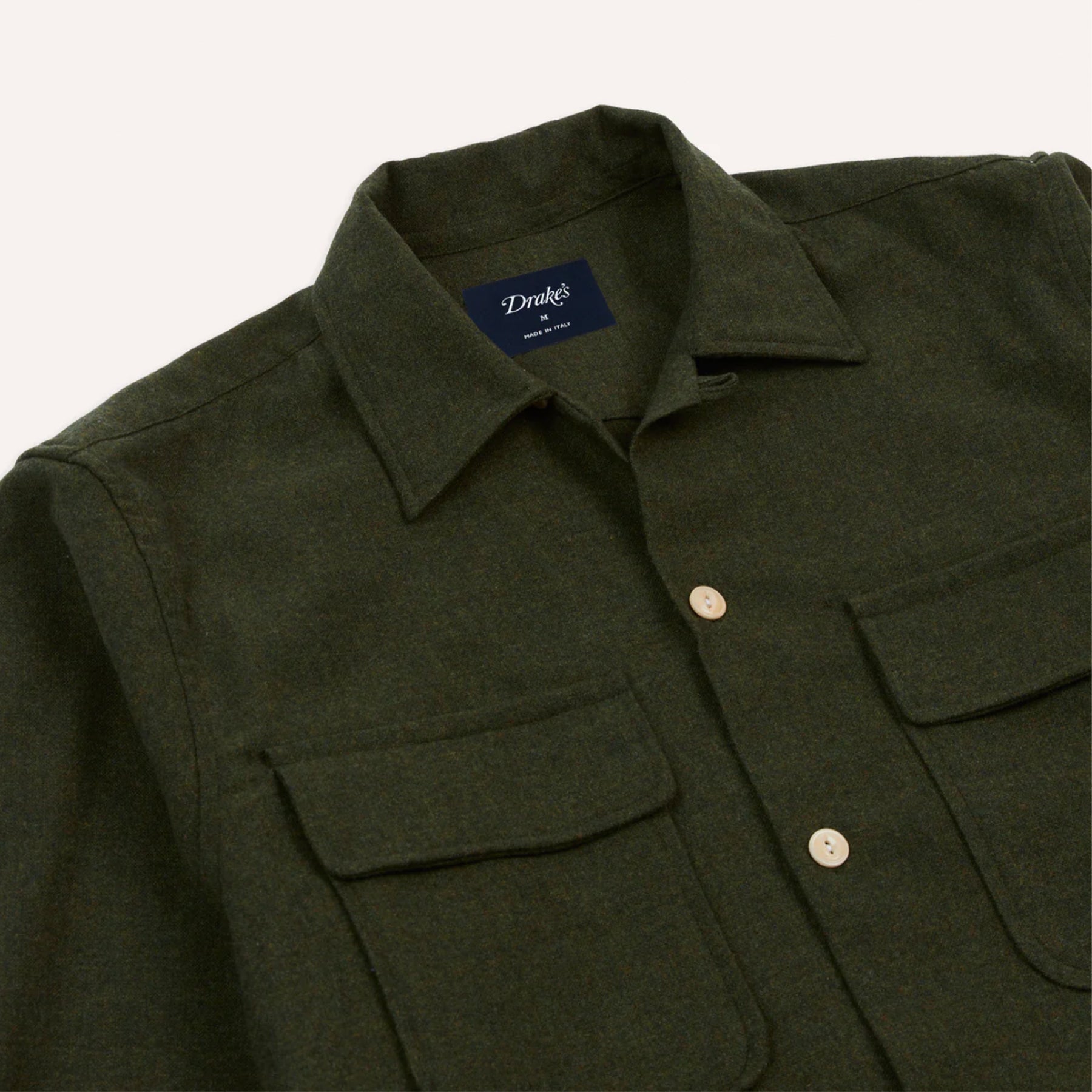 Cut with a camp collar for unrestricted movement, a straight square hem, and single-button cuffs, it features two flap pockets, perfect for keeping essentials close without weighing down your trousers. Every detail, from the fisheye corozo buttons to the single-needle construction, reflects Drake’s hallmark attention to quality.