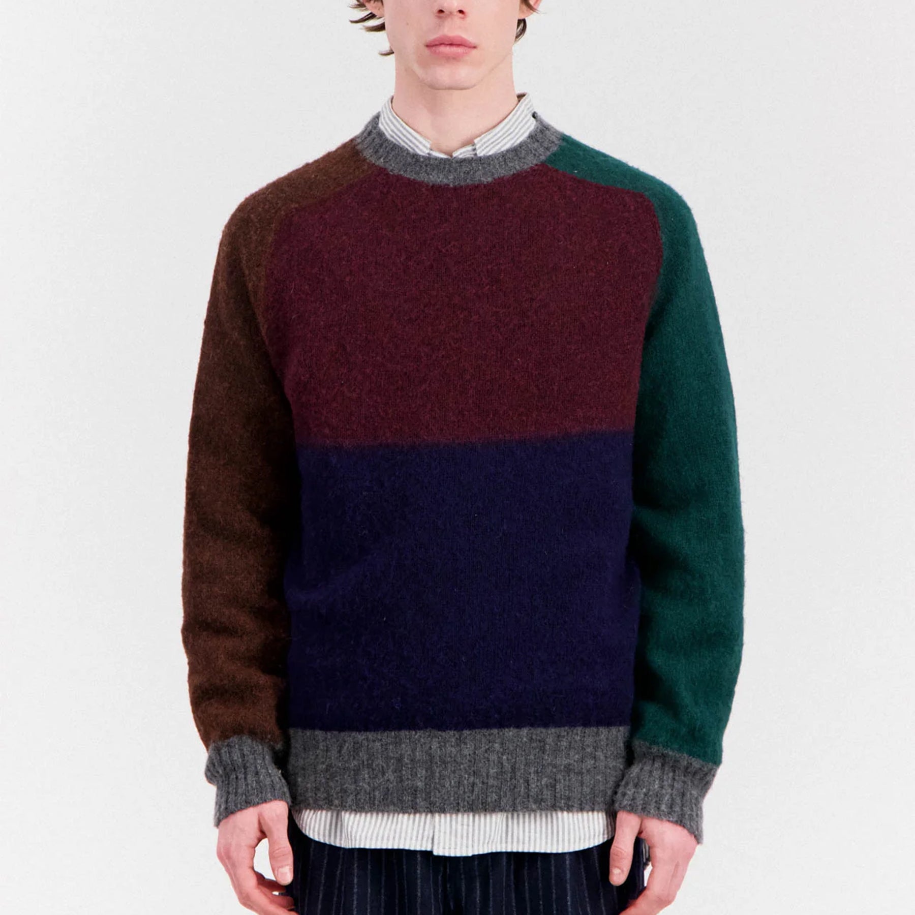 Firecracker by Howlin’ is a celebration of color, texture, and individuality. This signature crewneck sweater is crafted in Scotland. Each version of the Firecracker features bold, contrasting color blocks—carefully chosen for maximum visual impact without compromising wearability.