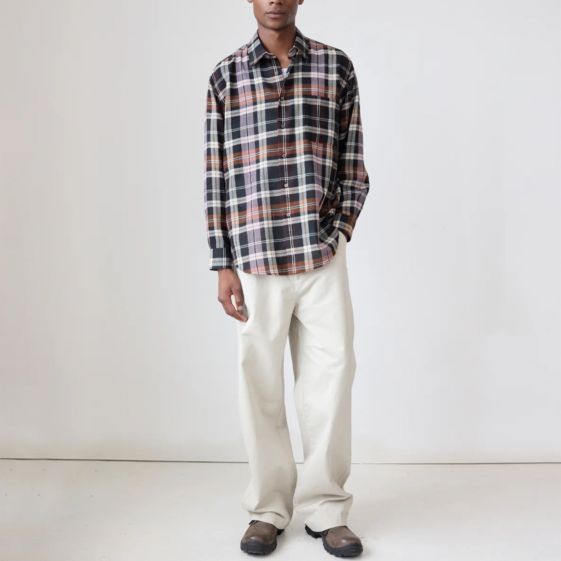 Carter Young's classic relaxed-fit shirt in an airy textured plaid blend.