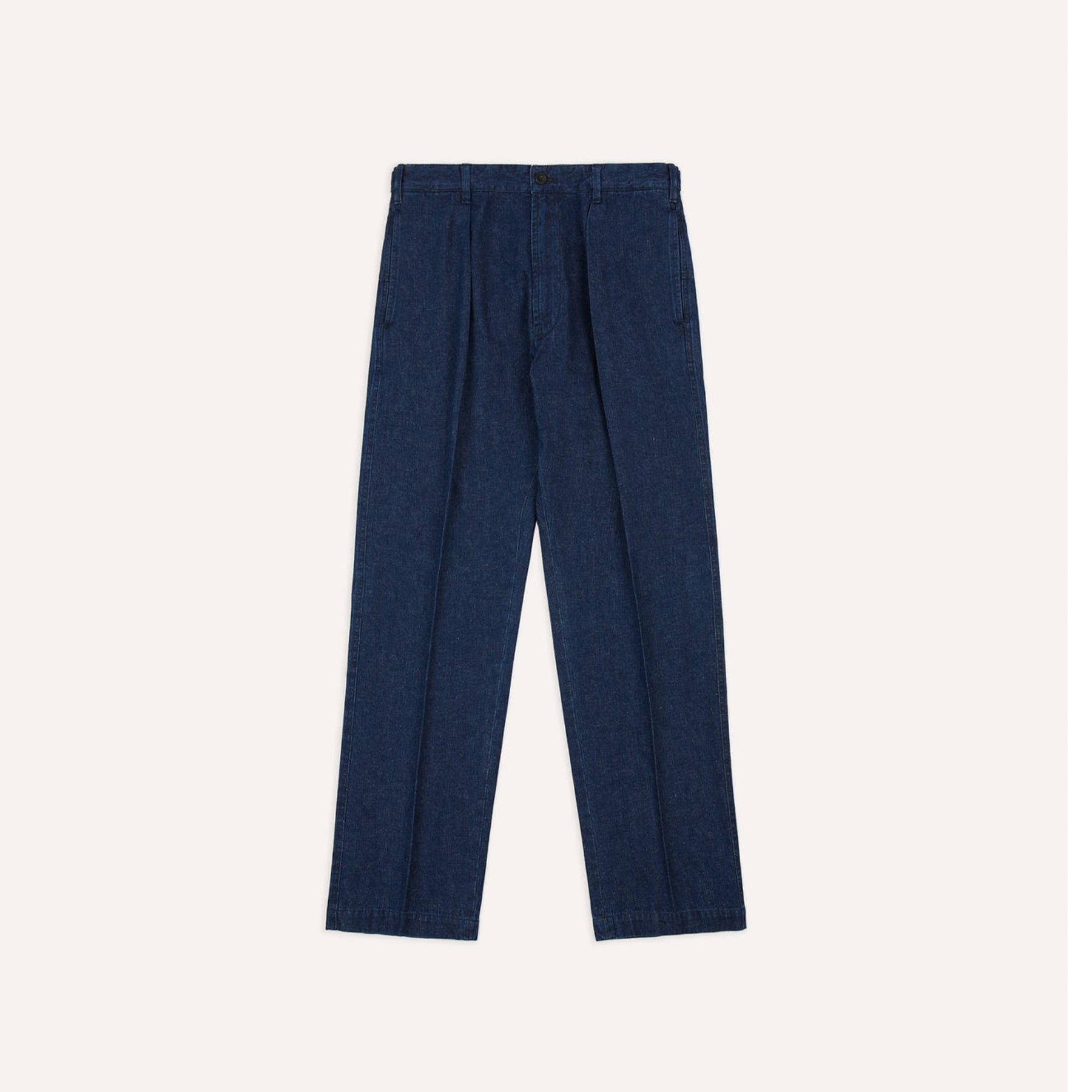 Cut from an indigo-dyed blend of cotton and linen, pair it with the matching blazer for an informal take on the classic two-piece suit.