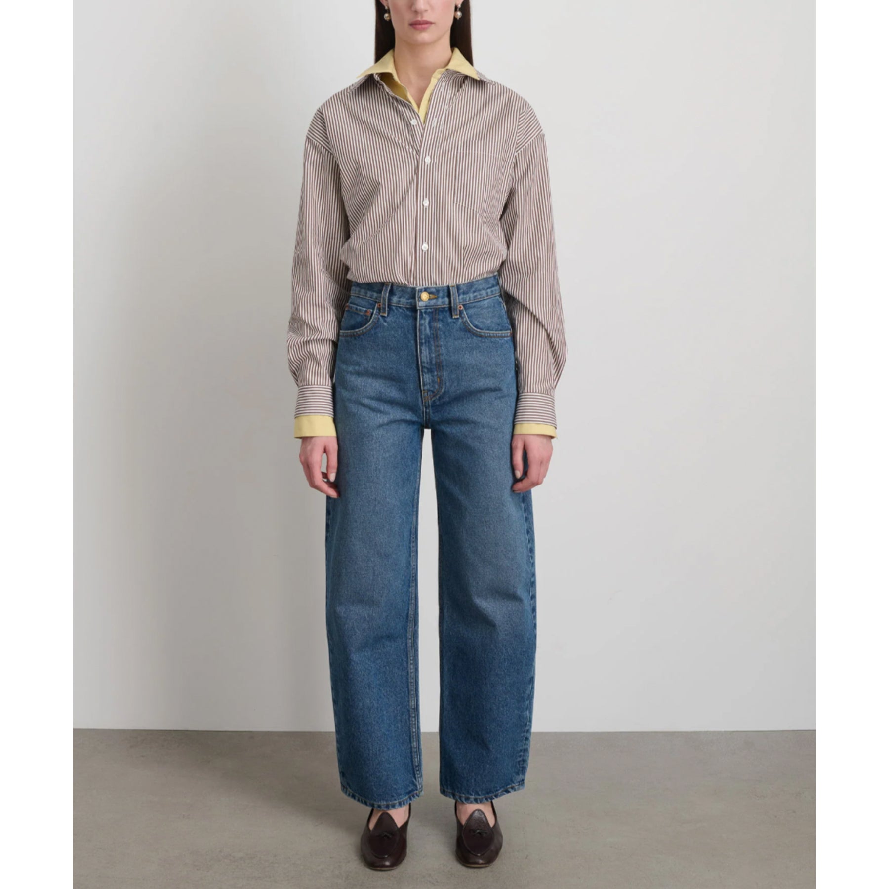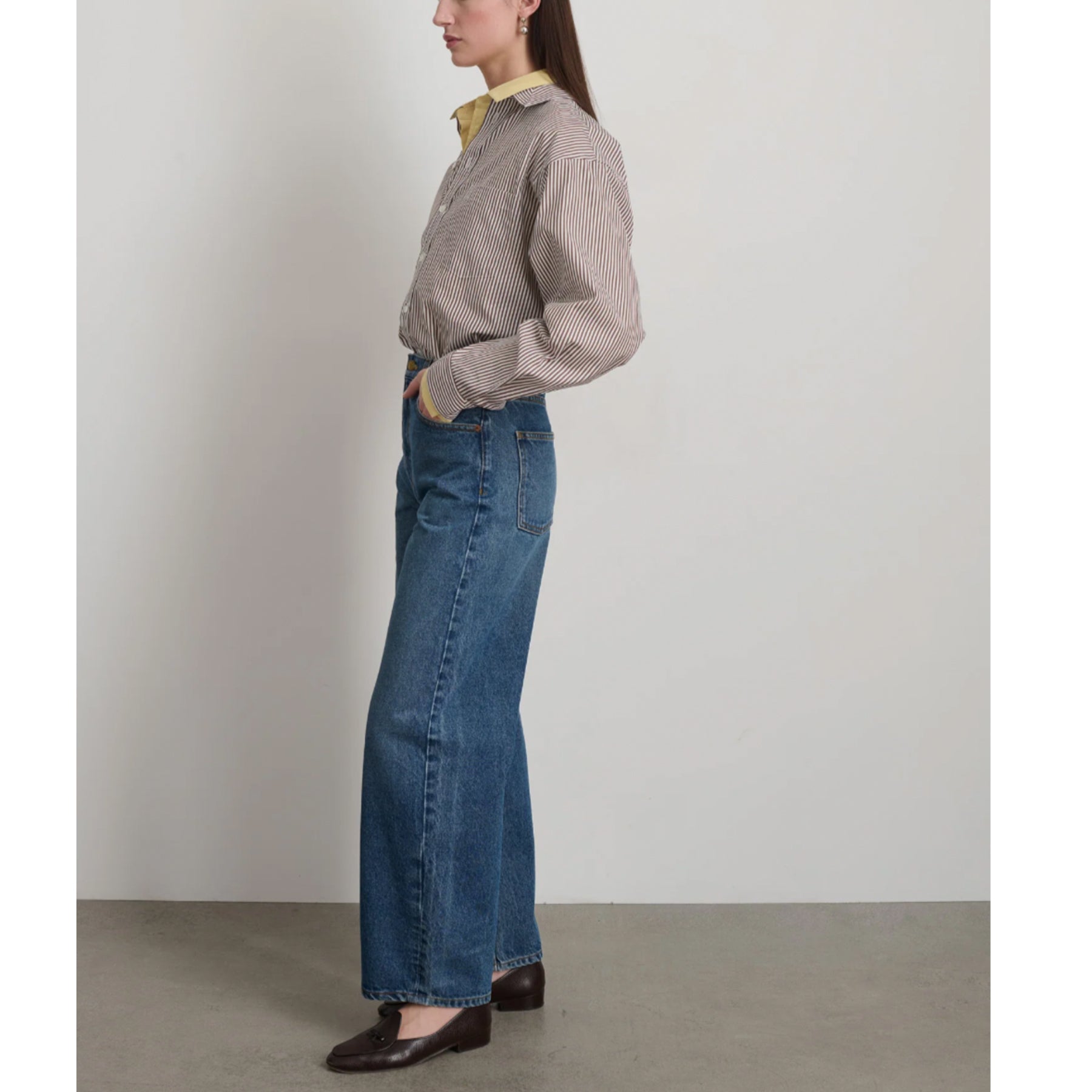 An arched leg shape defines this mid rise modern five-pocket silhouette. The Leroy sits below the natural waist, relaxed through the hip, straight inseam, curved outset tapers to the leg opening. Indigo rich ring spun denim lifted to a nostalgic mid tone vintage with character. Signature 5-pocket details, copper rivets, brass button shank finishes each jean.