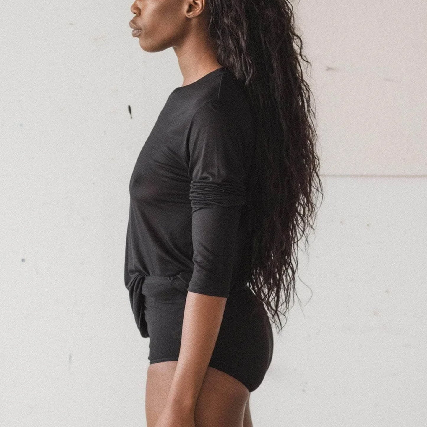Relaxed fit tee with crew neckline. Made from bamboo lyocell, both traceable, regenerative materials. Fiber production is a closed loop process, meaning it's more environmentally friendly with better water savings than cotton.