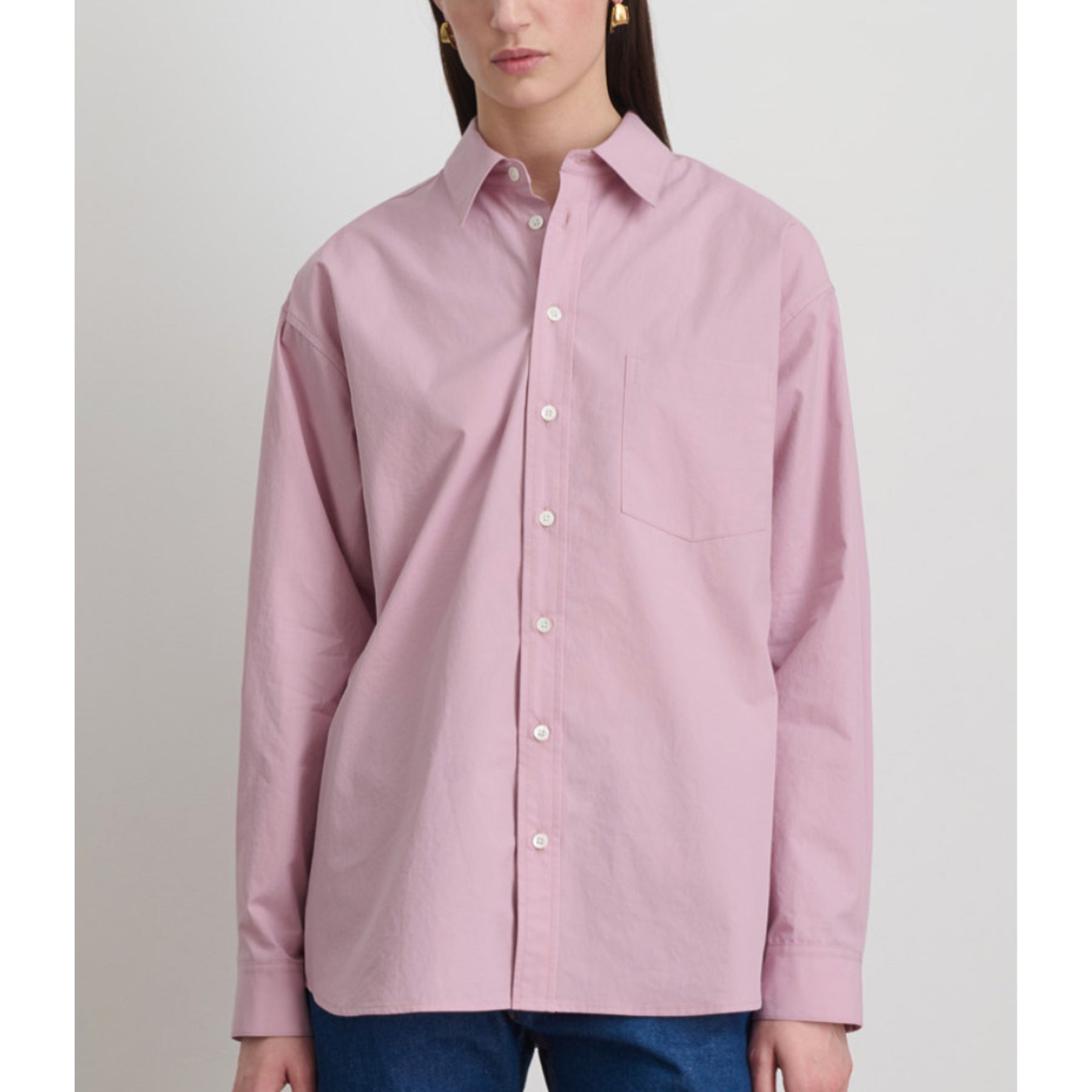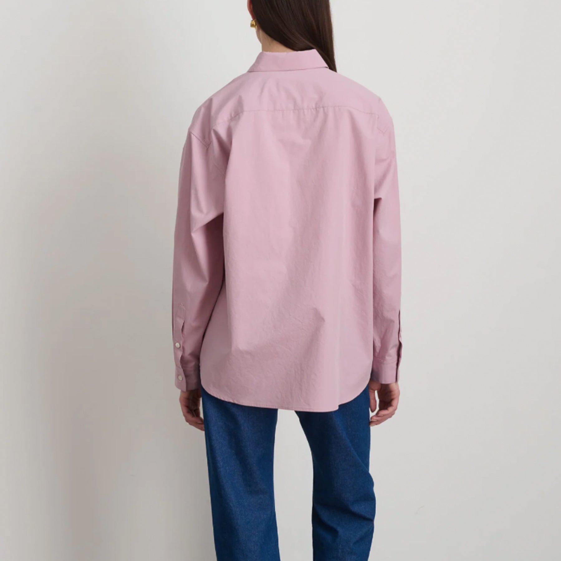 Classic button up shirt made of refined Japanese cotton poplin with a crisp, peached finish. The relaxed sloped silhouette and French seam tailoring inform the style.