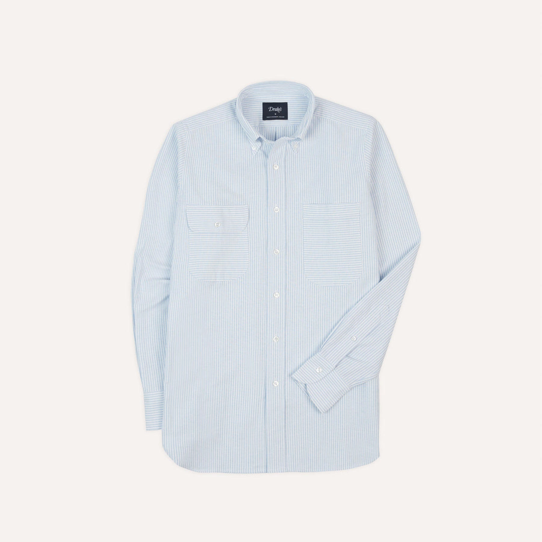 Featuring two chest pockets for unburdened trousers and a long point collar for a decidedly more sartorial leaning, things are capped off with the same single-needle construction and corozo buttons de rigueur to Drake's shirting.