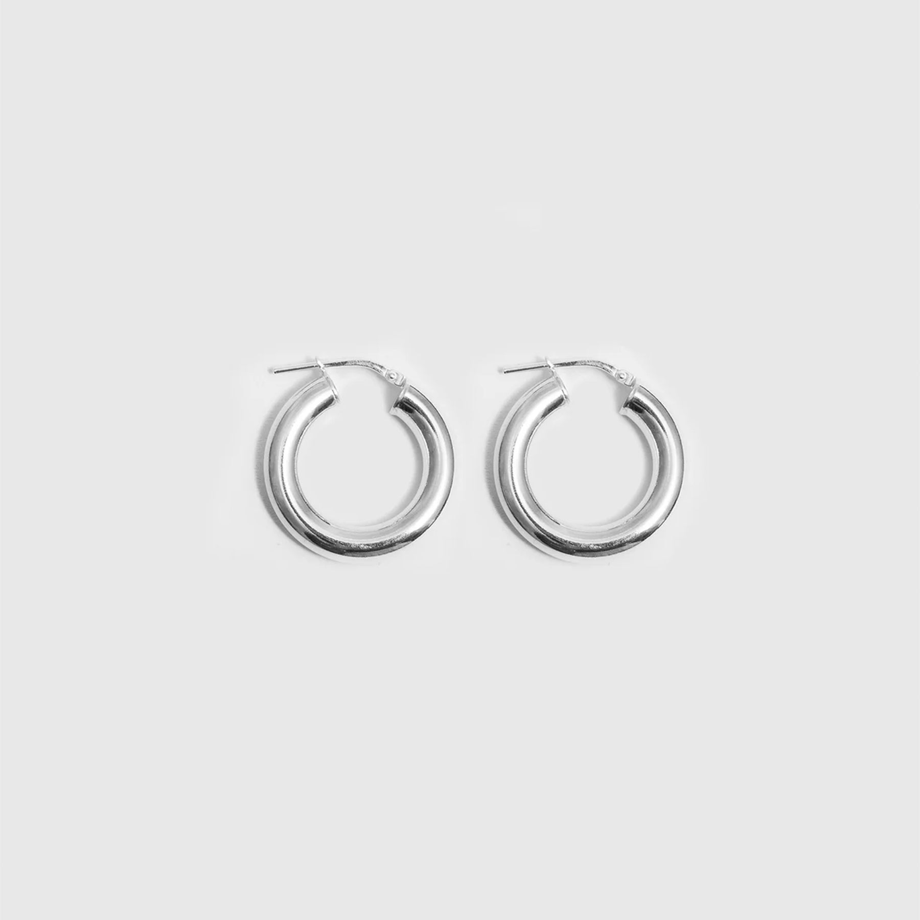 Hoop earrings made from sterling silver in a hollow tube silhouette that's light enough for daily wear. Diameter measures 24mm and is 5mm thick. Sold as a pair.