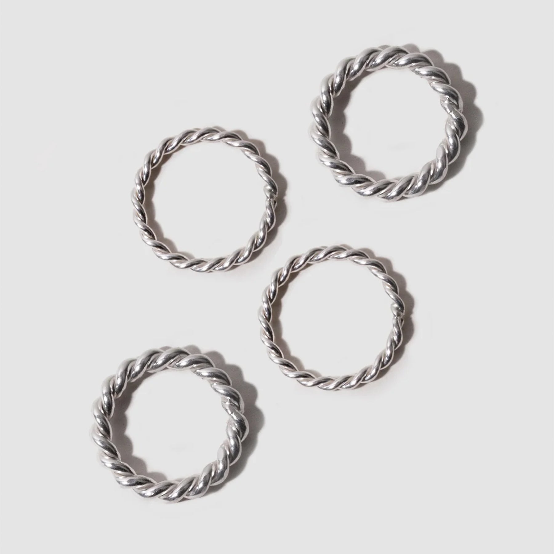 Hand-twisted in Los Angeles, the Spiral Rope Ring Set weaves bold texture into timeless forms. Featuring two widths—thin and thick—this set of four offers endless styling options, from stacking all together to mixing with your everyday bands. A modern heirloom designed to be worn your way.