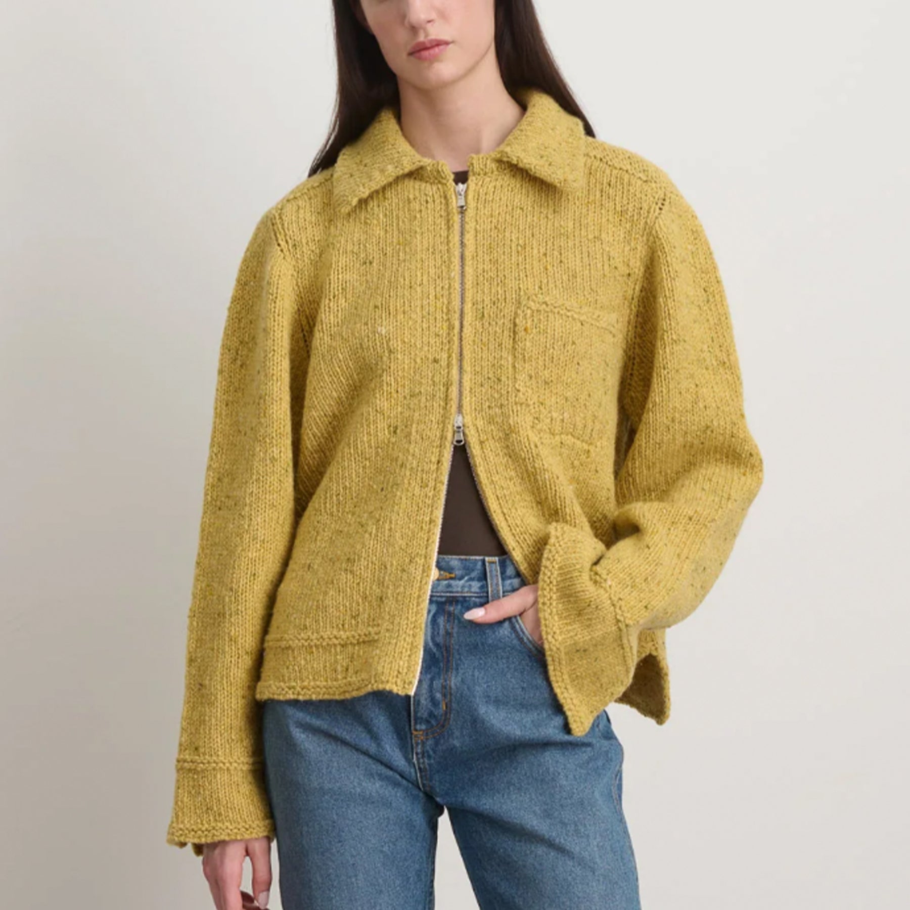 Classic wool ski sweater jacket in 100% Merino Wool spun in Donegal, Ireland. Vertical raglan finishing and uneven flecked-tweed gives unique personality to each piece. Two-way nickel plated zipper, and wide rib detail finish each piece.